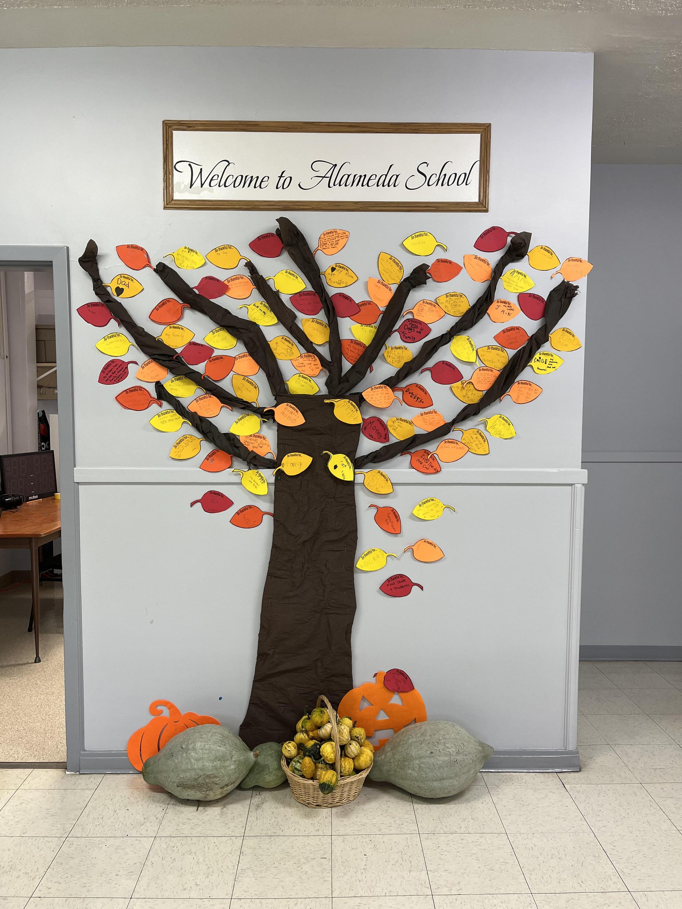 Happy Fall Some of the many things we're thankful for - family, friends, kindness, pets, sports, books, and much more! We welcome you to come on in and read the leaves of gratitude.