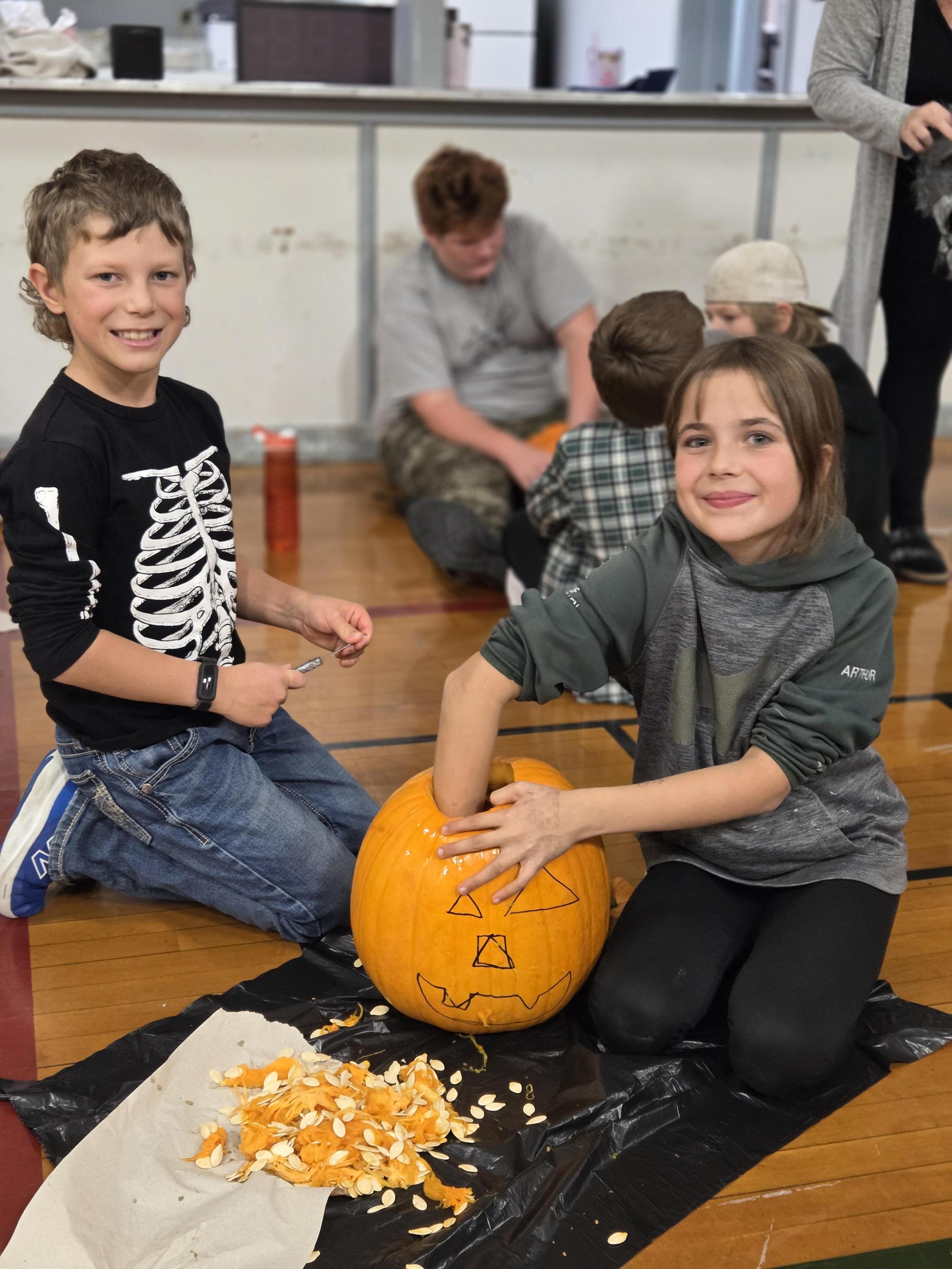 Students are welcome to take their carved pumpkins home as of Wednesday, October 29th. As you can see from the photos, they're very proud of their creations!